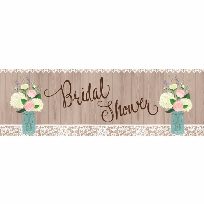 Liven up the event venue for country chic celebrations with our Rustic Wedding Bridal Shower Banners. Available in bulk quantities, the generously sized party signs feature a ”ridal Shower” headline accented by flower filled mason jars and wood grain and lace inspired details. The banners are a terrific complement to tableware from the complete line of Rustic Wedding wholesale party supplies.