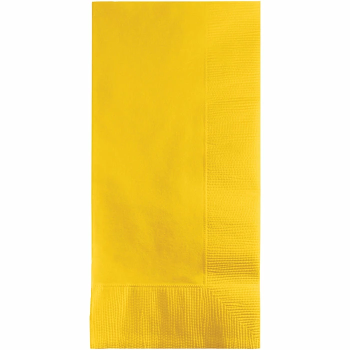 Details: Add exceptional quality and beautiful design to any dining table with our wholesale School Bus Yellow 2 Ply Dinner Napkins. These stylish yellow paper dinner napkins are very absorbent, so they stand up well to food messes and spills, and they can be used to hold party treats, too. Our yellow dinner napkins are competitively priced, making them perfect for wholesale buyers who need budget-friendly yellow napkins for parties, other events, restaurants, or bars. Our School Bus Yellow 2 Ply Dinner Napkins coordinate beautifully with our entire collection of school bus yellow party supplies and can be mixed with other colors to suit any color theme. For this price, you get one package containing (100) School Bus Yellow Dinner Napkins 2Ply 1/8 Fold. Approximate Dimensions: 8 in x 4 in