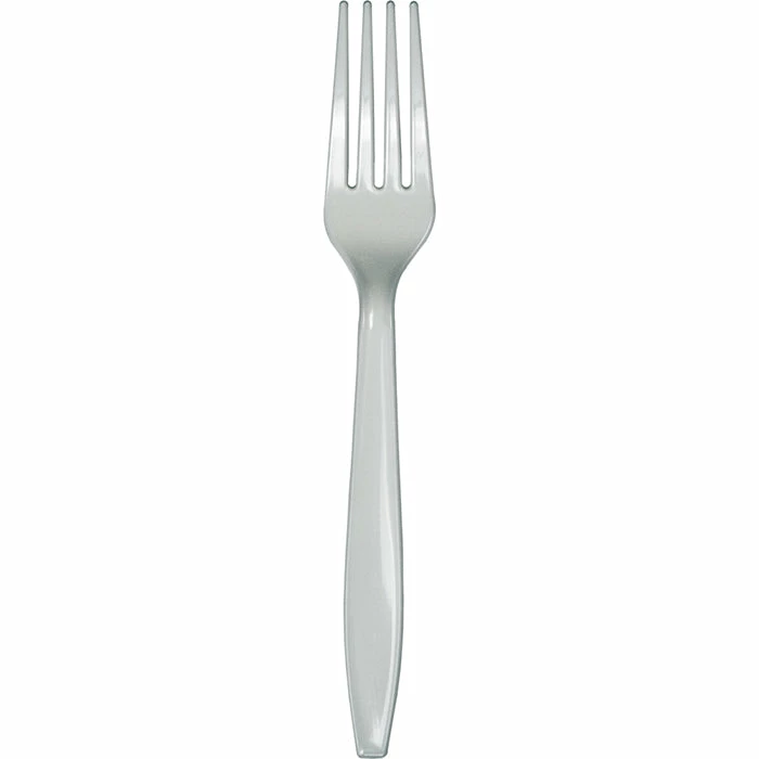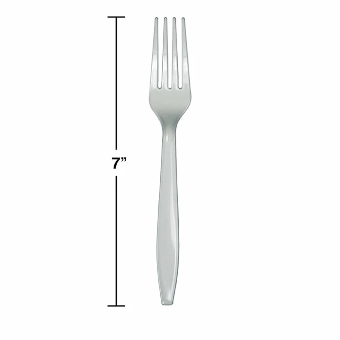 Details: Celebrate in style with our wholesale Shimmering Silver Forks and coordinating silver cutlery! These heavy duty plastic forks will add an enchanting touch of shimmering silver color to any buffet or table setting. Our elegant sliver forks look extra eye-catching when combined with our matching shimmering sliver plastic silverware. In addition to their excellent quality and design, our wholesale disposable cutlery is competitively priced to offer significant savings for event planners and party hosts who need budget-friendly silver plastic cutlery. For this price, you get one package containing (24) Shimmering Silver Plastic Forks. Approximate Dimensions: 7 in