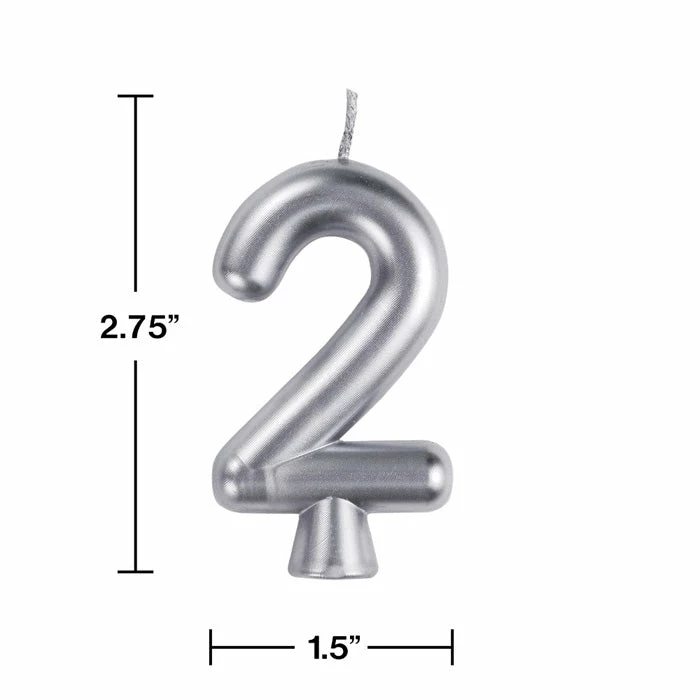 Details: You get one Silver 2 Candle for this price. Bring some excitement to your cake with this Silver Number 2 Candle. Featuring a silver metallic color, this candle is perfect for use alone or for pairing with other numbers. Measuring 1.5″x 2.75″, this candle can be paired with any other party supplies. Our Silver Number 2 Candles are perfect for event planners, caterers, and home hostesses alike.