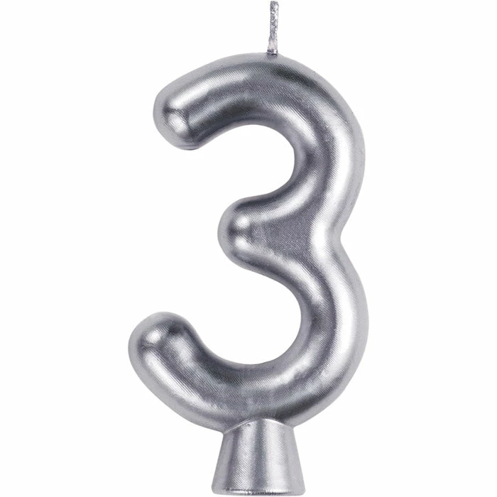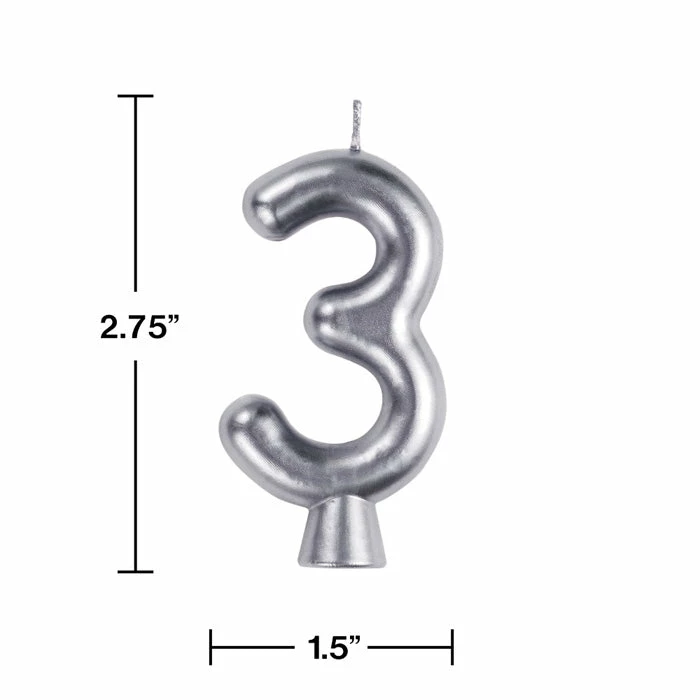 Details: You get one Silver 3 Candle for this price. Bring some excitement to your cake with this Silver Number 3 Candle. Featuring a silver metallic color, this candle is perfect for use alone or for pairing with other numbers. Measuring 1.5″x 2.75″, this candle can be paired with any other party supplies. Our Silver Number 3 Candles are perfect for event planners, caterers, and home hostesses alike.