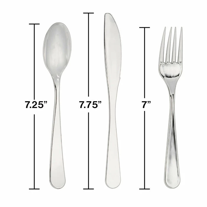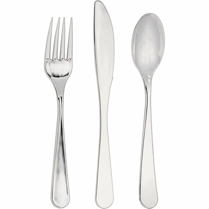 Details: Get a little bit of everything with this Silver Assorted Plastic Cutlery Set. Each package includes 8 spoons 8 forks and 8 knives that look like actual flatware. This cutlery set can be coordinated with any of our other party supplies. With discount pricing and great quality our Silver Assorted Plastic Cutlery by Elise are perfect for event planners caterers and home hostesses alike. Approximate Size: Assorted Sizes. Material: Plastic