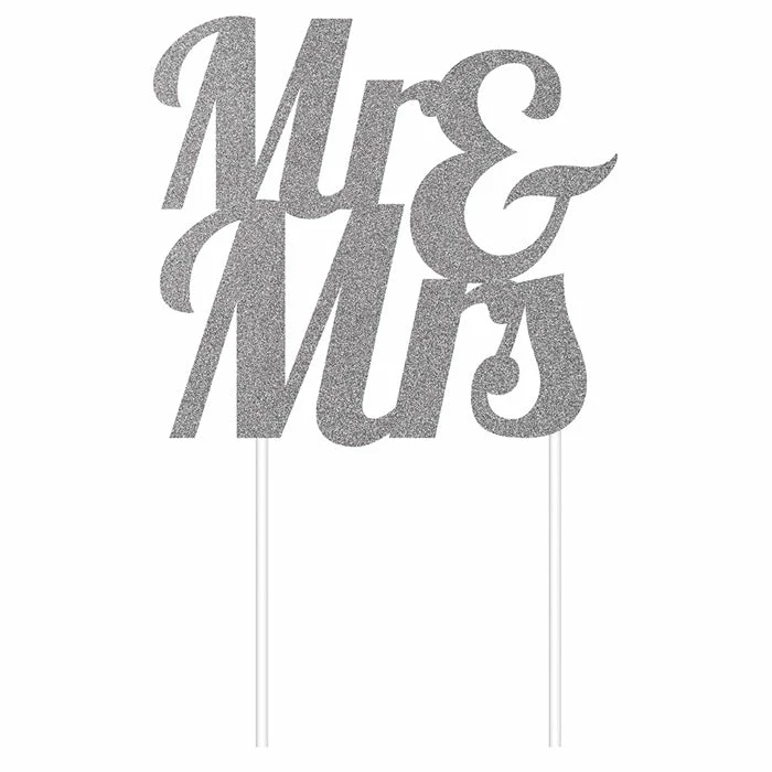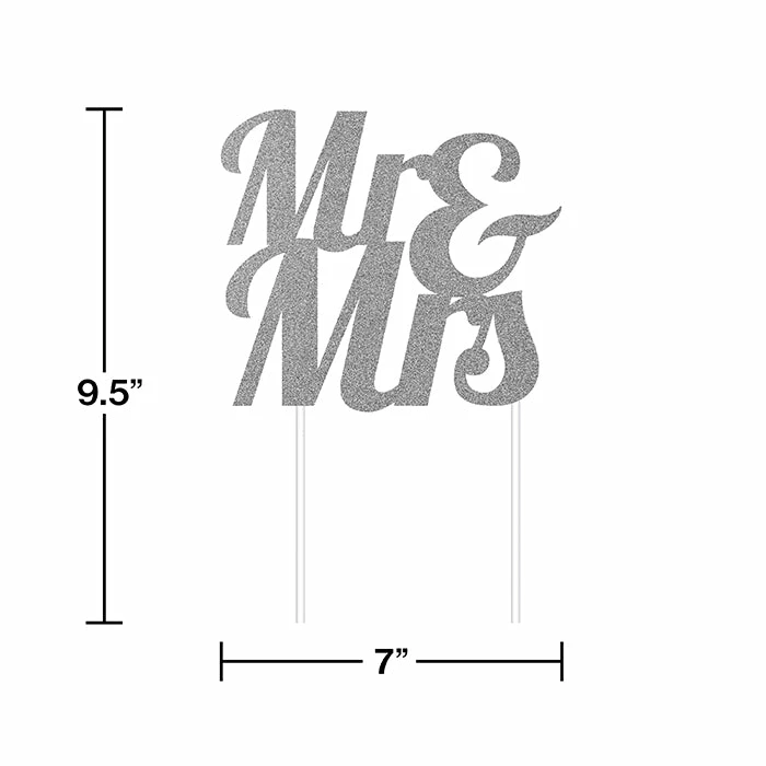 Details: This Silver Glitter Mr and Mrs Cake Topper adds a special elegance to your wedding reception. Featuring a glittery design that will sparkle like diamonds, this cake decoration measures 7″ x 9.5″. The cake topper can be used with any of our wedding party supplies. With discount pricing, our Silver Glitter Mr & Mrs Cake Toppers are perfect for event planners, caterers, and home hostesses alike. You get one Silver Glitter Mr & Mrs Cake Topper for this price. Approximate Dimensions: 7 in x 9.5 in