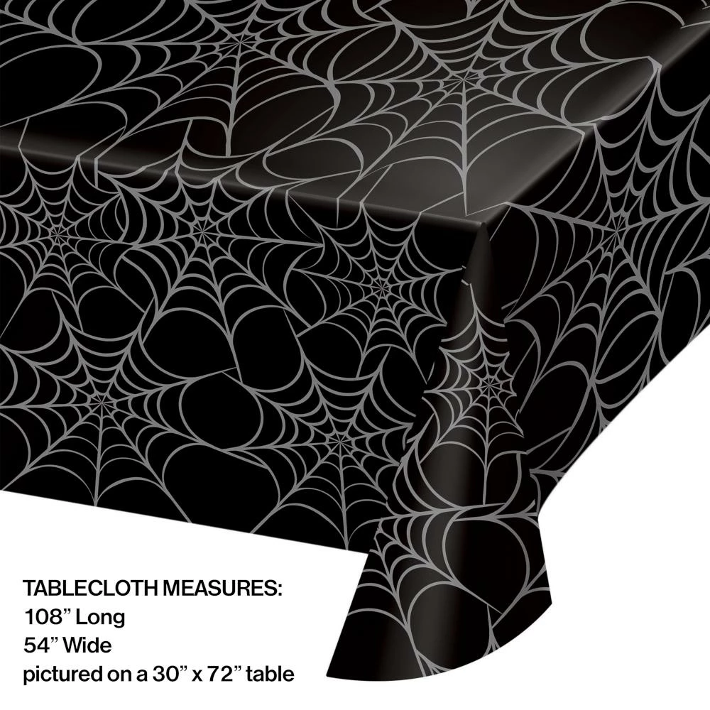 Details: Are you looking for wholesale plastic table covers to celebrate your next fun and spooky Halloween party? These 108″ x 54″ Spider Web Halloween table covers are perfect for spooky Halloween parties. sold with discount pricing at wholesale prices, these tablecovers will protect your table from all your goblin guests! You get one Silver Web Plastic table cover for this price. Approximate Dimensions: 108 in x 54 in
