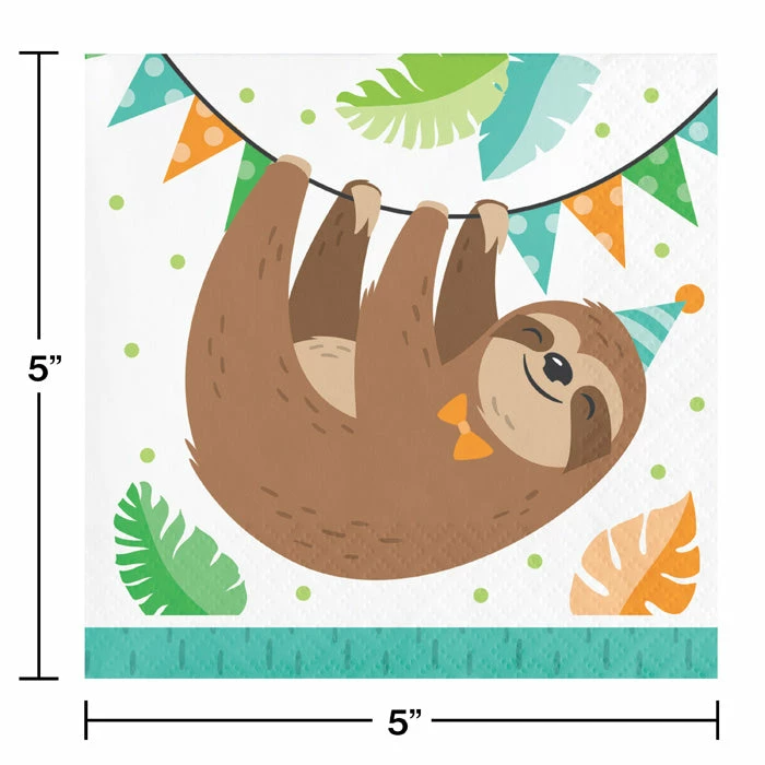 Details: Delight your guests with these Sloth Party Beverage Napkins. Featuring an adorable hanging sloth against a white background, these napkins are perfect for pairing with any fun beverages. Measuring 5″ these napkins can be paired with any other Sloth Party birthday supplies. Our Sloth Party Beverage Napkins are perfect for event planners, caterers, and home hostesses alike.