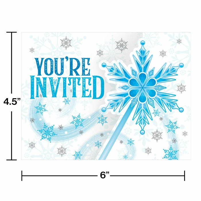 Surprise your very own princess when you invite all her friends to an enchanting party with the Snow Princess Invitations. These paper invitations measure 4.5″ x 4.5″ and feature a blue wand and silver snowflakes set against a white theme. Sold in packs of 48, these party invitations coordinate with all Snow Princess party supplies. With wholesale pricing and bulk quantities, our Snow Princess Invitations 48 ct are perfect for event planners, caterers, and home hostesses alike.