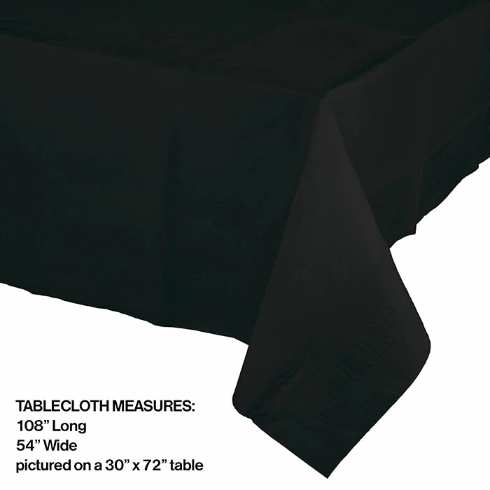 Details: The Black Velvet Paper table covers is manufactured to create a classy uniform look to the entire Black Velvet line of party supplies from our Touch of Color collection. Made in the USA, the classic midnight black paper table cover features a plastic lining and offers style that is budget friendly to any event that requires a high quality disposable option for table linens. The table cover measures 54 inches wide x 108 inches long and fits a standard 8 foot banquet table. The Black Velvet paper table cover retails 1 table covers per package and is sold at a discount price. You get one Black Velvet Tablecover 54″X 108″ Polylined Tissue for this price. Approximate Dimensions: 108 in x 54 in