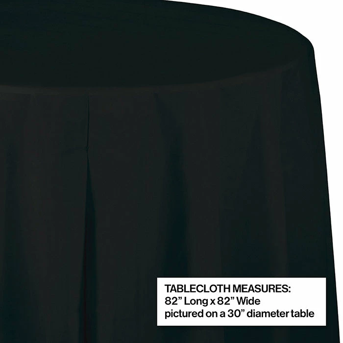 Details: The Black Velvet Octy-Round Plastic table covers is manufactured to coordinate with all the Black Velvet party supplies from our Touch of Color collection. Made from a high quality plastic in a classic black shade, the table cover offers a stylish appeal that is budget friendly to cover round tables at events that require a disposable option for table linens. The Black Velvet Round Plastic table cover measures 82 inches in diameter, retails 1 table cover per package, and is sold at a discount price. You get one Black Velvet Tablecover, Octy Round 82″ Plastic for this price. Approximate Dimensions: 82 in x 82 in
