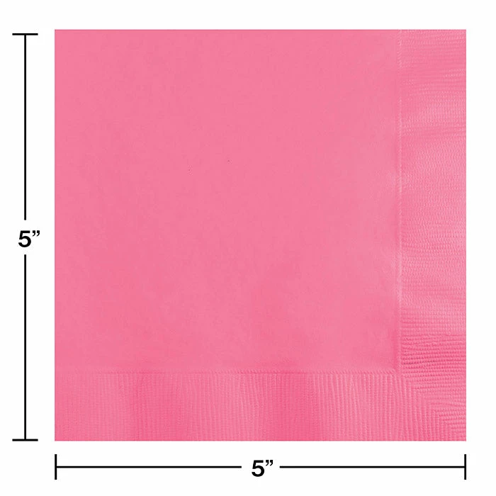 Details: These Candy Pink 3-Ply Beverage Napkins exhibit a soft yet firm composition. The facial quality tissue material provides excellent comfort and performance. A modern touch to your next get-together. With discount pricing, our Candy Pink Beverage Napkins 3 ply are perfect for event planners, caterers, and home hostesses alike. For this price, you get one package containing (50) Candy Pink Beverage Napkin, 3 Ply. Approximate Dimensions: 5 in x 5 in