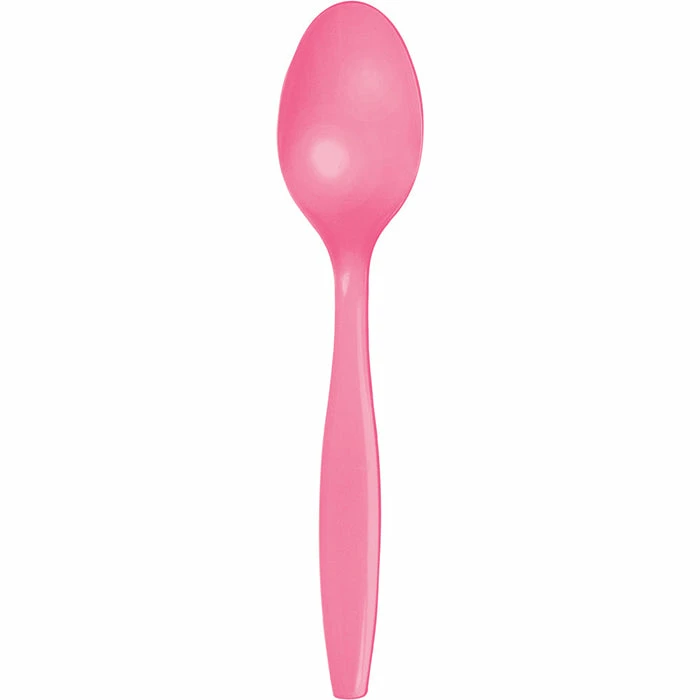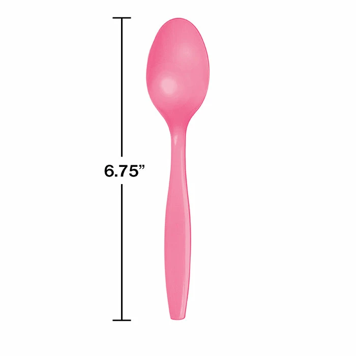 Details: Celebrate in style with our Candy Pink Plastic Spoons. These candy pink spoons will add a charming touch of light pink to any buffet or dining table. Our disposable serving spoons are made from premium plastic to ensure durability through an entire meal service. Our heavy duty plastic silverware offers quick and easy post-party clean-up, too; simply throw away or recycle these disposable serving spoons after use. Darling and durable, our candy pink plastic cutlery is available at a great price to ensure significant savings for wholesale buyers who need budget-friendly candy pink cutlery. Pair these candy pink plastic spoons with plastic cutlery in other colors for a really enchanting look. For this price, you get one package containing (24) Candy Pink Plastic Spoons. Approximate Dimensions: 6 in