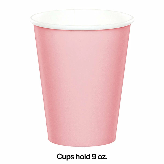 Details: The disposable Classic Pink Hot & Cold Cups are sturdy paper cups that have a 9 ounce capacity and can be used to serve cold beverages, as well as coffee and tea service. The outside of the cup is pink; the rim and inside of the cup are white. Arrives 24 cups per package in retail ready packaging. For this price, you get one package containing (24) Classic Pink Hot/Cold Paper Cups 9 Oz. Approximate Dimensions: 3.75 in