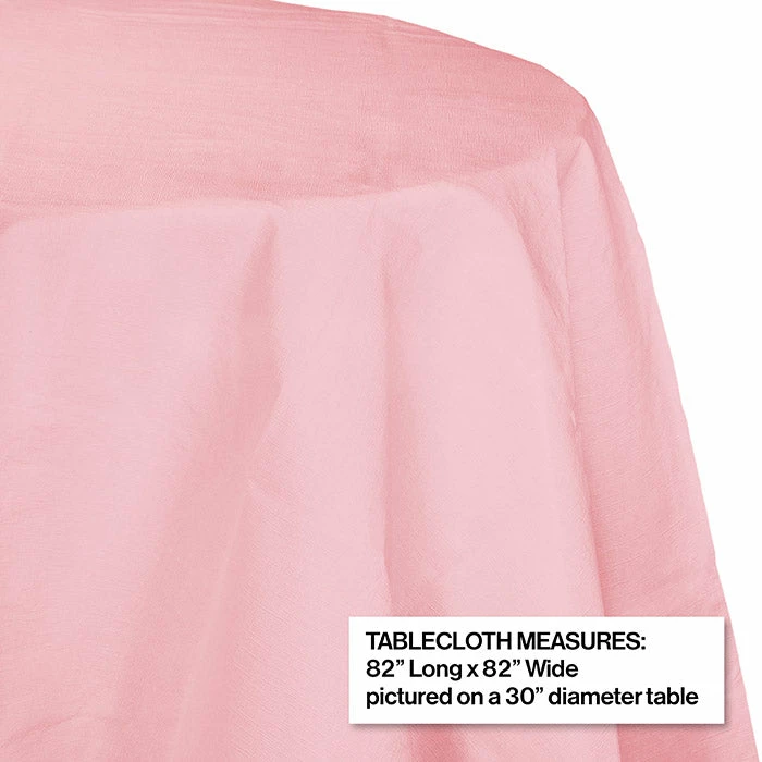Details: A cost effective option for banquets, corporate functions, weddings, birthdays, or any other party or celebration where you anticipate spills or have a large number of tables to cover is the Classic Pink Octy-Round Paper table cover. The round paper table cover is lined with plastic, which provides a protective barrier to the table underneath. It measures 82″ in diameter. Made in the USA. One table cover per package; You get one Classic Pink Tablecover, Octy Round 82″ Polylined Tissue for this price. Approximate Dimensions: 82 in x 82 in