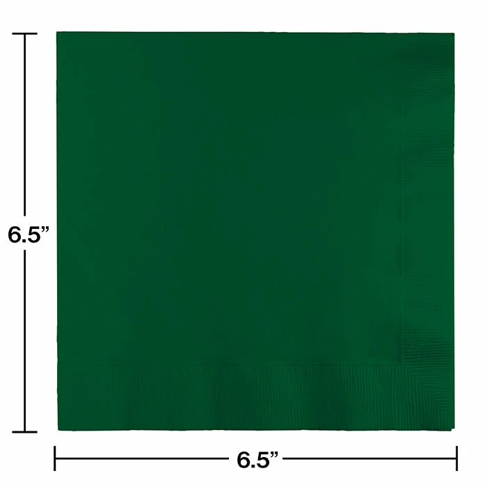 Details: Be prepared for any clean-up situation with these Hunter Green Luncheon Napkins displayed at celebrations and catered events. Each durable napkin measures 6.375 inches x 6.375 inches and each package contains 50 napkins. Put these napkins next to place settings, close to a dinner buffet or on the dessert table. Fan out a group of napkins and display them near snacks and appetizers. The hunter green color is ideal for numerous holiday occasions, receptions and birthdays as well as other large celebrations and gatherings. The Hunter Green Luncheon Napkins are sold. For this price, you get one package containing (50) Hunter Green Luncheon Napkin 2Ply. Approximate Dimensions: 6.4 in x 6.4 in
