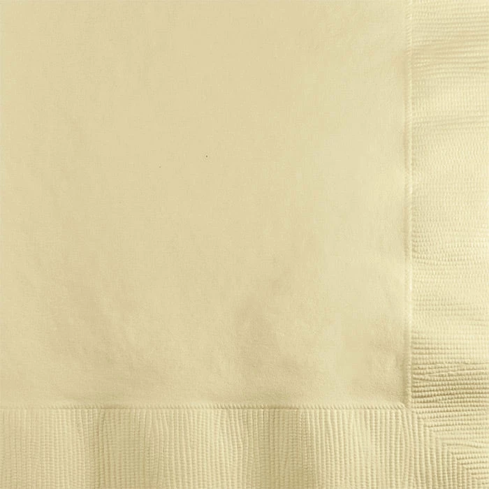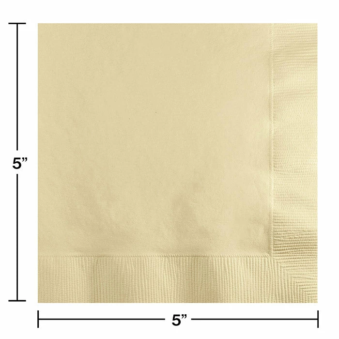 Details: Be prepared for quick clean-ups by having plenty of these Ivory Beverage Napkins on hand at your party or catered event. Each package contains 50 napkins that measure 4.938 inches x 4.938 inches when folded. The ivory color is perfect for many special occasions such as reunions, graduations, receptions and more. Set the 2-ply napkins out at the dessert table or drink bar, or place them next to bowls of treats and candies to be used for holding a handful of snacks. There is always a use for these napkins! The Ivory Beverage Napkins are sold in packs of 50. For this price, you get one package containing (50) Ivory Beverage Napkin 2Ply. Approximate Dimensions: 5 in x 5 in