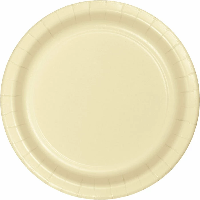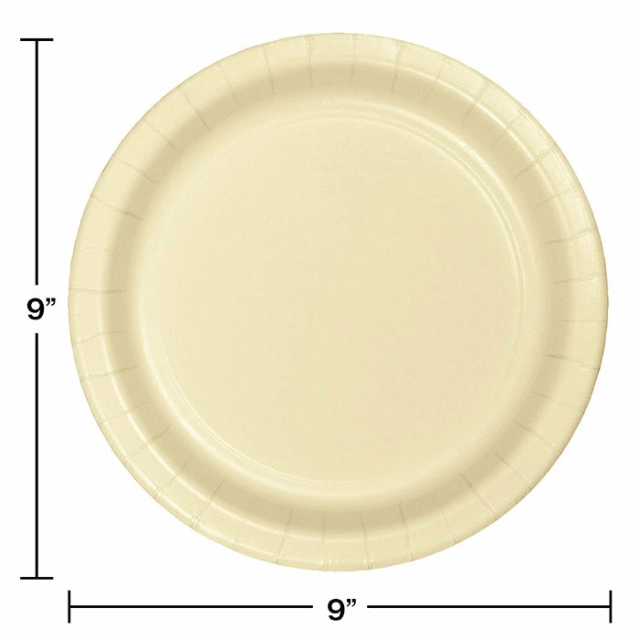 Details: Decorate the table with charming style at your catered events or gatherings with the Ivory Dinner Plates. Each package contains 24 round paper plates that measure 8.75 inches across. The durable plates are perfect for serving pot luck type meals, fancier entrees served at receptions or even a casual backyard Barbecue. Ivory is a great neutral color that complements varied occasions and can always be used as a base color for events. Pair this plate with matching printed theme products for a stunning display. The Ivory Dinner Plates are sold 24 per package. For this price, you get one package containing (24) Ivory Paper Plates. Approximate Dimensions: 8.75 in x 8.75 in