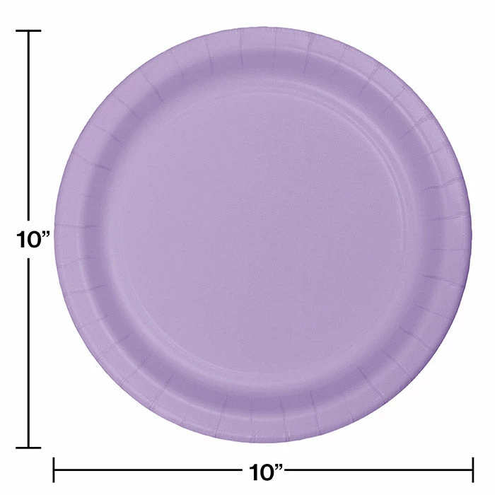 Details: Add delightful style and function to any large gathering or catered event with the Luscious Lavender Banquet Plates. The 10.25 inch round paper plate is sturdy enough for larger meals served at weddings, graduations or reunions and the color coordinates with numerous theme ensembles. Each set of 24 plates will help make the perfect foundation for any special event – these can also be used as serving dishes or chargers for smaller plates. The Luscious Lavender Banquet Plates are sold at a discount price. For this price, you get one package containing (24) Luscious Lavender Banquet Plates. Approximate Dimensions: 10 in x 10 in