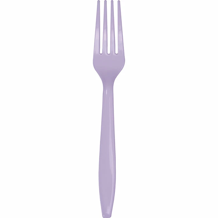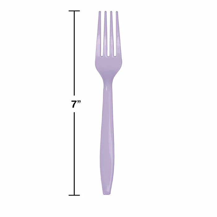 Details: Party planners, guests and restaurant patrons will find our wholesale Luscious Lavender Plastic Forks an excellent choice for their serving needs. Constructed from premium plastic, these heavy duty plastic forks are sturdy enough to handle the heartiest foods. These lavender forks look extra eye-catching when combined with our matching lavender cutlery or complementary purple plastic silverware. Sturdy and stylish, this wholesale disposable cutlery is perfect for event planners, restaurateurs, and party hosts looking for lavender cutlery. Use these heavy duty plastic forks with our other Luscious Lavender party supplies. For this price, you get one package containing (24) Luscious Lavender Purple Plastic Forks. Approximate Dimensions: 7 in