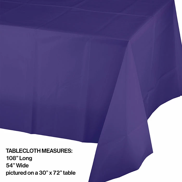 Details: Accent chosen party supplies for your special event with the bold color on our Purple Plastic table covers. Constructed of medium weight plastic, the table covers look great but can simply be disposed of at the end of the event. Oblong 54 inch x 108 inch table covers are perfectly sized for standard banquet tables measuring 6 to 8 feet long. Purple Plastic table covers are packaged individually and sold. You get one Purple Tablecover Plastic 54″ X 108″ for this price. Approximate Dimensions: 108 in x 54 in
