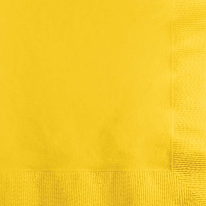 Details: Choose our School Bus Yellow 2 Ply Beverage Napkins to celebrate any number of events that will have a large crowd in attendance. The softness absorbency and vibrant yellow shade of these paper beverage napkins will be adored by guests and customers alike. Stylish and absorbent these yellow napkins are ideal for holding glasses protecting tabletops in lieu of coasters and cleaning up spills. Our yellow disposable cocktail napkins will also ensure easy clean-up after your event. These school bus yellow cocktail napkins are competitively priced to offer significant savings to buyers looking for yellow beverage napkins. Material: 2-Ply Tissue