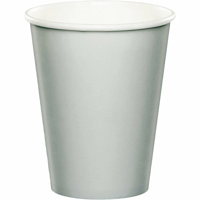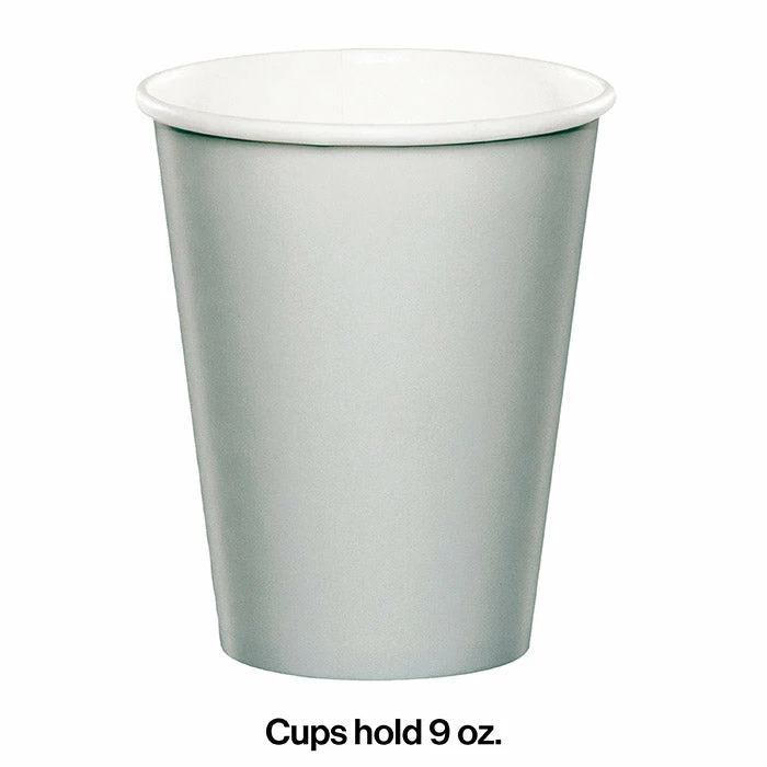 Details: To add glamorous accents and style to your catered event or gathering just set out the Shimmering Silver Hot & Cold Cups. Each package contains 24 sturdy paper cups in shimmering silver to coordinate with a variety of party supply ensembles. As an added bonus, the paper cups can simply be disposed of or recycled at the end of the event. The silver color is the perfect accent for wedding receptions, anniversaries, school dances, and holiday parties. The Shimmering Silver Hot & Cold Cups include 24 per package. For this price, you get one package containing (24) Shimmering Silver Hot/Cold Paper Paper Cups 9 Oz. Approximate Dimensions: 3.75 in