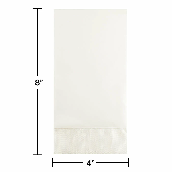Details: Ideal for use as a napkin or disposable hand towel, the White Guest Towels measure 4.375 inches wide x 8 inches long. The 3-ply paper napkins provide a clean and polished look to any number of events including baby showers, bridal showers, and birthday celebrations. The white towels can be perfectly paired with patterned or complementary solid tableware and decoration. Guest towels arrive pre-folded and ready to display and can simply be disposed of at the end of the event. The White 3-ply Guest Towels arrive in retail ready packaging of 16 each. For this price, you get one package containing (16) White Guest Towel, 3 Ply. Approximate Dimensions: 8 in x 4.4 in