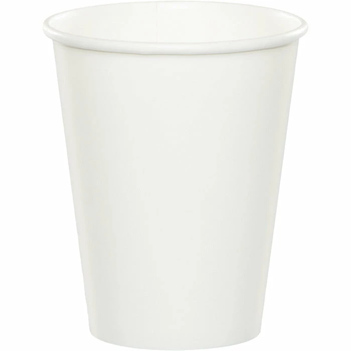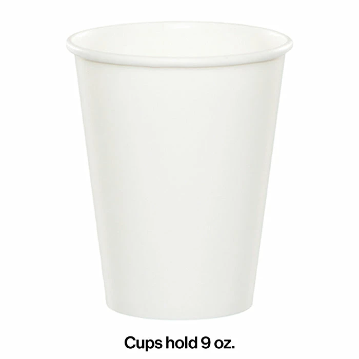 Details: Ideal for larger celebrations our White Cups are the perfect way to accent ensemble party supplies and often help stretch the budget as well. Budget savvy hostesses and event planners will want to consider mixing solid color options with pattern supplies to provide a nice contrast while stretching their dollar. Constructed of medium weight paper board stock the 9 ounce cups are ideal for use with hot or cold beverages. Not intended for use in the microwave White 9 Ounce Cups include 24 cups per package. Approximate Size: 9 oz. Material: Heavyweight Paperboard
