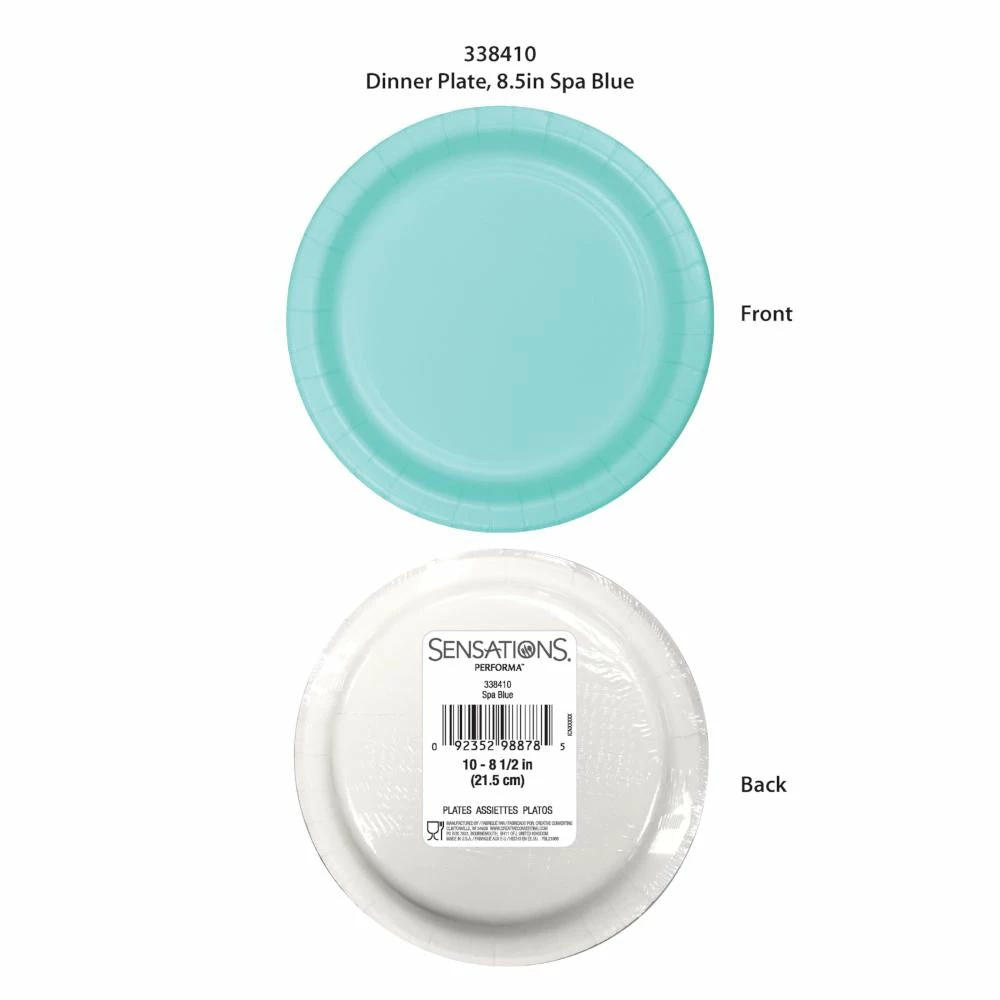 Details: Shop and save on our great Spa Blue Themed Paper Tableware party decorations including this item: Spa Blue 10Ct Performa Dinner Plate.. Made in the USA!