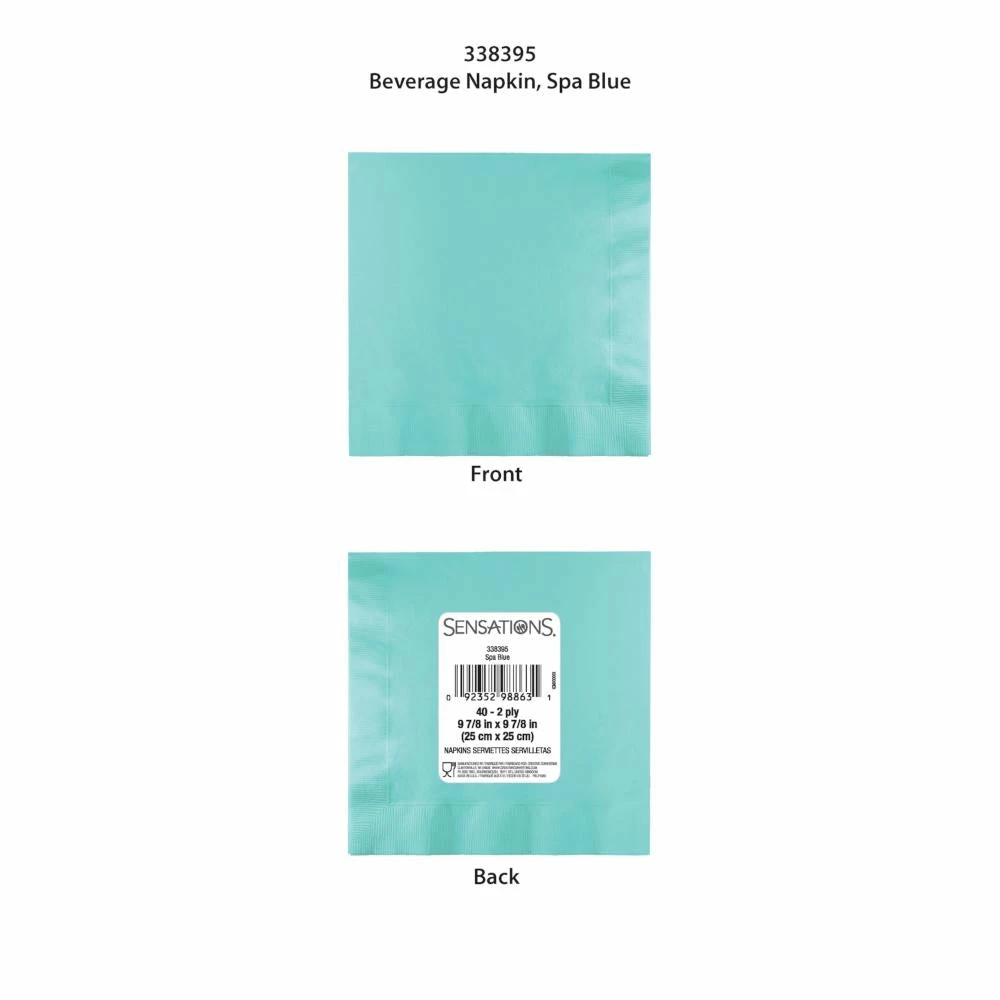 Details: Shop and save on our great Spa Blue Themed Paper Tableware party decorations including this item: Spa Blue 40Ct 2Ply Beverage Napkin. Be ready for any occasion that requires a quick clean up with plenty of these Spa Blue Beverage Napkins on hand at your party or catered event. Each package contains 40 2-ply napkins that measure 5 inches x 5 inches when folded. The Spa Blue color is perfect for multiple occasions; showers, graduations, birthdays and more. Set the napkins out at the dessert table or drink bar, or place them next to bowls of treats and candies to be used for holding a handful of snacks. There is always a use for these napkins! The Spa Blue Beverage Napkins are packed in quantities of 40.