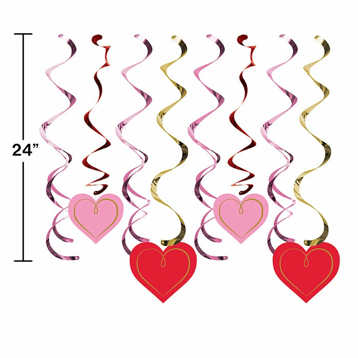 Use this Split Dizzy Danglers, Val Hearts With Gold (Case Pack of 96) item and our other Valentines Day Party Decorations and Tableware products to throw a great party. You get 8 per package and 12 packages per case. Total case count is 96. Shop and save at PartyDecorations.com! Size: 24″