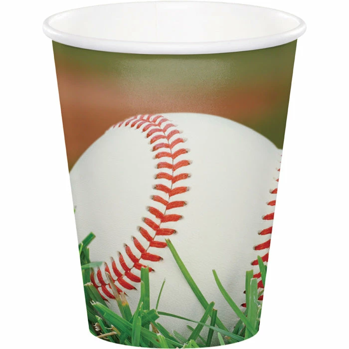 Details: During the 7th inning stretch, serve up hot or cold refreshments with the Baseball Cups. These 9 oz. cups feature a baseball sitting on grass and are made of sturdy paper. The cups complement other party supplies from the Baseball collection. With discount pricing, our Baseball Cups are perfect for event planners, caterers, and home hostesses alike. For this price, you get one package containing (8) Sports Fanatic Baseball Hot/Cold Paper Paper Cups 9 Oz. Approximate Dimensions: 3.75 in