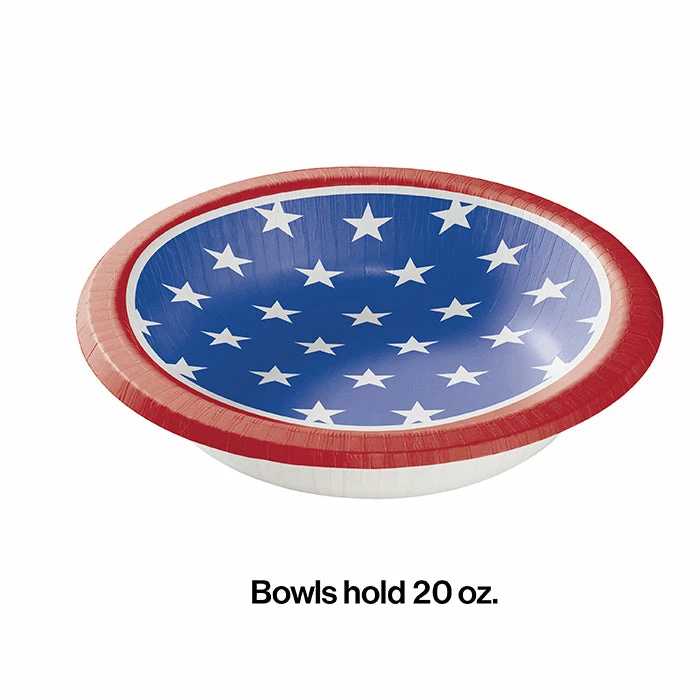 Details: Serve up all-American snacks in the Stars & Stripes Snack Bowls. These square bowls are blue covered in white stars inside with a red border on the rim of the bowl. Sold in packs of 8, they’re great for one-time use at your 4th of July party, patriotic party, summer BBQ, or backyard picnic. For this price, you get one package containing (8) Stars And Strips Paper Bowls. Approximate Dimensions: 7.25 in x 7.25 in x 1.5 in