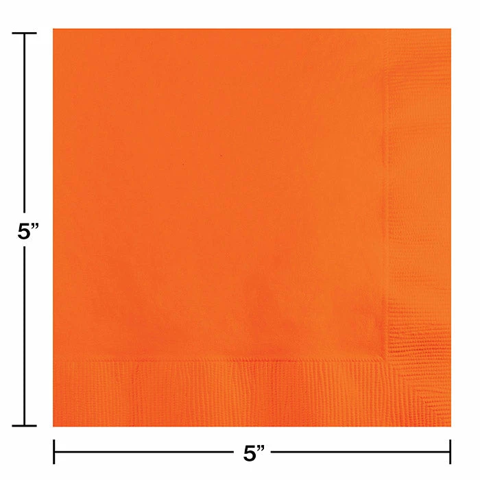 Details: These Sunkissed Orange 3-Ply Beverage Napkins exhibit a soft yet firm composition. The facial quality tissue material provides excellent comfort and performance. A modern touch to your next get-together. With discount pricing, our Sunkissed Orange Beverage Napkins 3 ply are perfect for event planners, caterers, and home hostesses alike. For this price, you get one package containing (50) Sunkissed Orange Beverage Napkin, 3 Ply. Approximate Dimensions: 5 in x 5 in