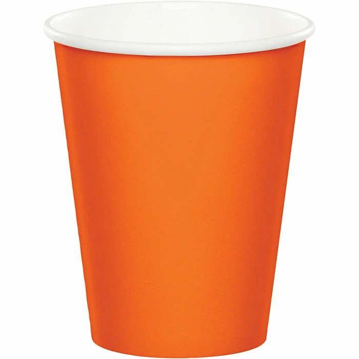 Details: Add a fun and festive look to your table setting with the Sunkissed Orange Paper Cups. These durable party cups hold 9 oz. of either hot or cold beverages and give your party the right splash of color. Complement this tableware item with other products in the Sunkissed Orange collection. With discount pricing, our Sunkissed Orange 9 oz Hot & Cold Cups are perfect for event planners, caterers, and home hostesses alike. For this price, you get one package containing (8) Sunkissed Orange Hot/Cold Paper Paper Cups 9 Oz. Approximate Dimensions: 3.125 in