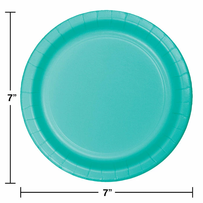 Details: Make sure everyone gets their cake and eats it too with these Teal Lagoon Dessert Plates. The Sturdy Style plates are made of paper and measure 7″ round, perfect for all of your snacks and goodies. These plates can be combined with other Teal Lagoon party supplies. With discount pricing, our Teal Lagoon Dessert Plates are perfect for event planners, caterers, and home hostesses alike. For this price, you get one package containing (24) Teal Lagoon Dessert Plates. Approximate Dimensions: 7 in x 7 in