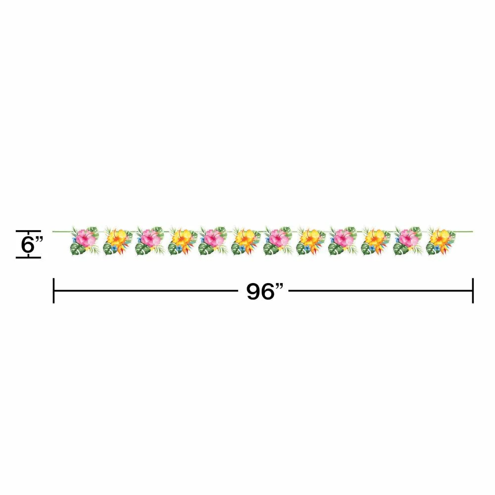 Details: You can almost smell the hibiscus flowers when you hang the Floral Paradise Banner. These paper banners measure 96″ x 6″ and feature multiple tropical flowers with a green, yellow, and pink theme. Sold individually, these paper banners coordinate with all Floral Paradise party supplies. Save more on party decorations, party favors and party supplies at PartyDecorations.com!. Material: Paper, Polyester. Approximate Size/Dimensions (inches): 6 x 96.