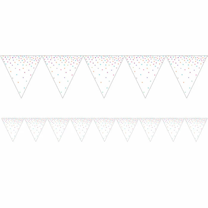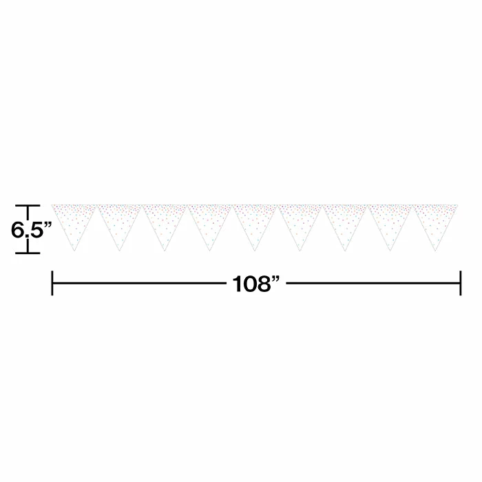 Brighten up the party with this Iridescent Party Flag Banner. This banner measures 108″ x 6.5″ and features white pennants with a colorful, iridescent design. This banner can be coordinated with our other Iridescent Party party supplies. With wholesale pricing and bulk quantities, our Iridescent Party Flag Banners 12 ct are perfect for event planners, caterers, and home hostesses alike.