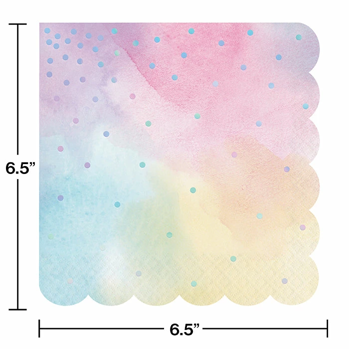 Details: These Iridescent Party Napkins will take your party to the next level. These beautiful 6.5″ party napkins display an iridescent treatment of shades of pink, purple and blue with white dots all over. Featuring a scalloped design, these napkins perfectly accentuate other Iridescent Party party supplies. With discount pricing, our Iridescent Party Luncheon Napkins are perfect for event planners, caterers, and home hostesses alike. For this price, you get one package containing (16) Iridescent Party Napkins. Approximate Dimensions: 6.4 in x 6.4 in