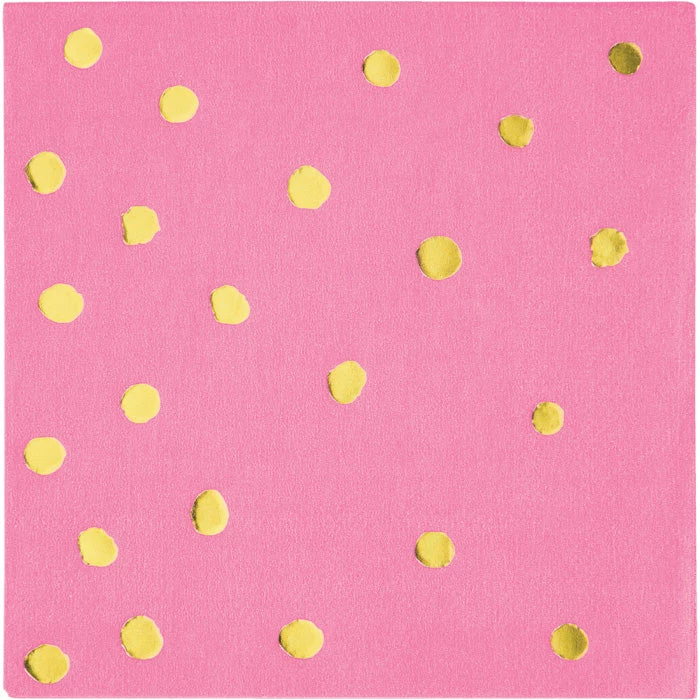 Details: Dazzle your guests with these Candy Pink and Gold Foil Dot Beverage Napkins. Covered with a beautiful solid Candy Pink with speckled Gold dots, these foil stamped napkins make the perfect addition to any celebration. The napkins measure 5″. With discount pricing, our Candy Pink and Gold Foil Dot Beverage Napkins are perfect for event planners, caterers, and home hostesses alike. For this price, you get one package containing (16) Toc Candy Pink Foil Beverage Napkin, 3Ply Foil Stamped. Approximate Dimensions: 5 in x 5 in