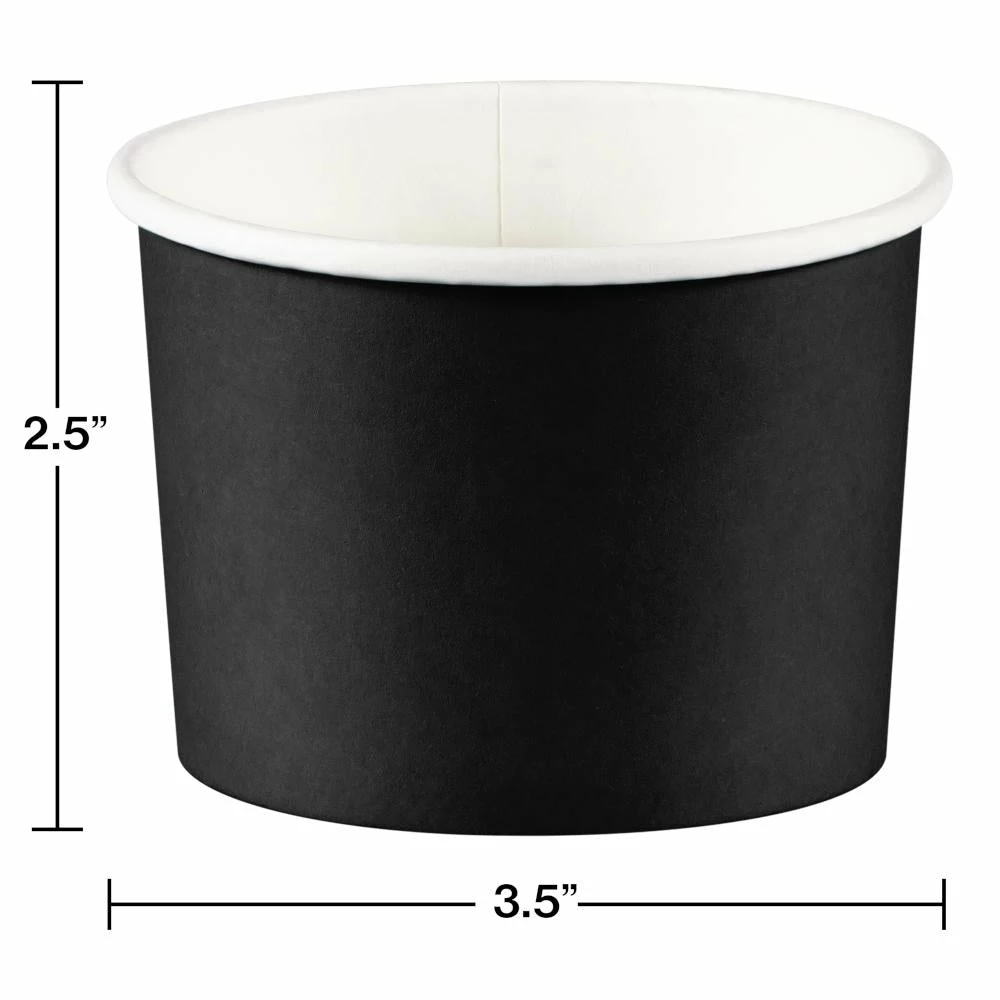 Details: Our Black Treat Cups are perfect for serving snacks, fruit, ice cream, and more at your celebration. They measure 2.5″ x 3.5″, and are made from sturdy boardstock. Their solid black color will complement a variety of party themes and events. Sold 8 per package, grab some for your party today! Save more on party decorations, party favors and party supplies at PartyDecorations.com!. Material: Paper. Approximate Size/Dimensions (inches): 2.5 x 3.5 x 3.5.