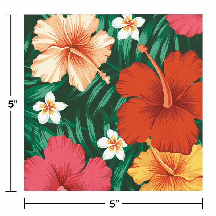 Scoop up our Tropical Flowers Cocktail Napkins for your summer gathering. These soft, 2-ply napkins measure 5″, ideal for serving drinks, appetizers, and desserts. They feature bright hibiscus flowers and tropical leaves for a botanical look. Sold 192 napkins per package, complete the look at your party with our other Tropical Flowers party supplies. With wholesale pricing and bulk quantities, our Tropical Flowers Beverage Napkins 192 ct are perfect for event planners, caterers, and home hostesses alike.