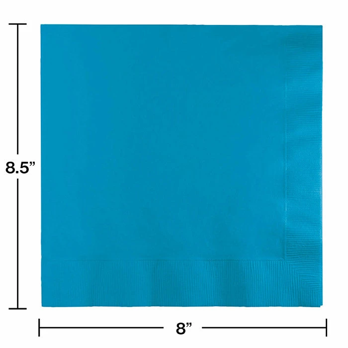 Details: Add a classy napkin to your table ensemble with the Turquoise Dinner Napkins! The rich and bold tone will add a pop of color to the tables place settings and the 1/4 fold design works well for wrapping silverware. The Turquoise Dinner Napkins coordinate with the other Turquoise supplies in the Touch of Color collection. With discount pricing, our Turquoise Dinner Napkins 3 Ply are perfect for event planners, caterers, and home hostesses alike. For this price, you get one package containing (25) Turquoise Dinner Napkins 3Ply 1/4 Fld. Approximate Dimensions: 8.5 in x 8 in