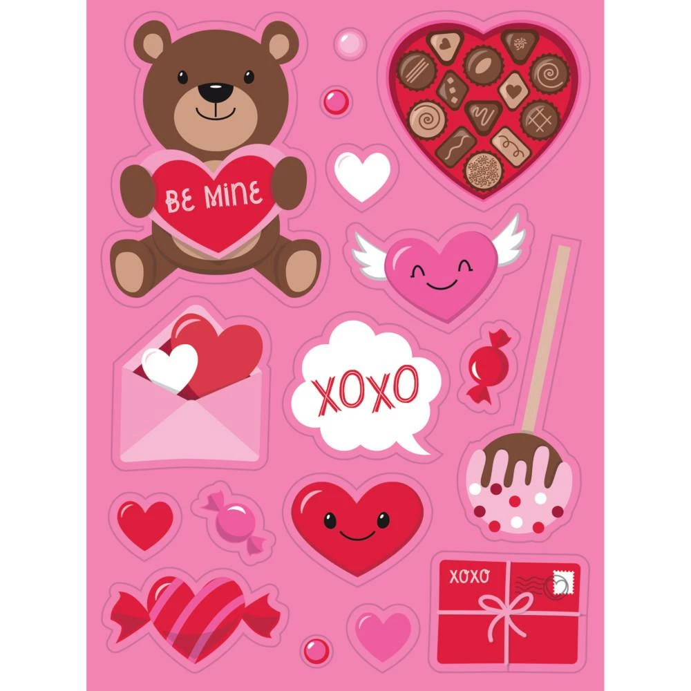 Details: Your child will have fun decorating their Valentine cards with the Valentine Fun Stickers. These paper stickers measure 6″ x 4.5″ and feature cartoon candy, teddy bears, and Valentine’s hearts with a red, brown, pink, and white theme. These paper stickers coordinate with all Valentine’s Day party supplies. WOur Valentine Fun Stickers are perfect for event planners, caterers, and home hostesses alike.