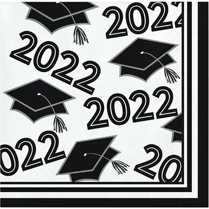 Details: Add these elegant Class of 2022 White Cocktail Napkins to your party tables and you guests won’t be disappointed. Featuring a black and white design with “2022” and small graduation caps, these napkins are the perfect addition to your party tables. Measuring 5″ and sold in packs of 36, these napkins can be paired with any other graduation party supplies. Our Class of 2022 White Beverage Napkins are perfect for event planners, caterers, and home hostesses alike.