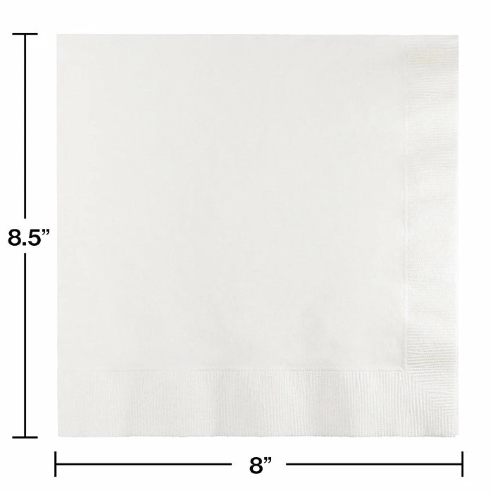 Details: Bring a classy and elegant touch to your next celebration with these White Dinner Napkins. Made with facial quality tissue the solid White napkins feature a 1/4 fold design, making them a wonderful choice to add along with your tableware items. These dinner napkins look great next to our other White party supplies. With discount pricing, our White Dinner Napkins 3 Ply are perfect for event planners, caterers, and home hostesses alike. For this price, you get one package containing (25) White Dinner Napkins 3Ply 1/4 Fld. Approximate Dimensions: 8.5 in x 8 in