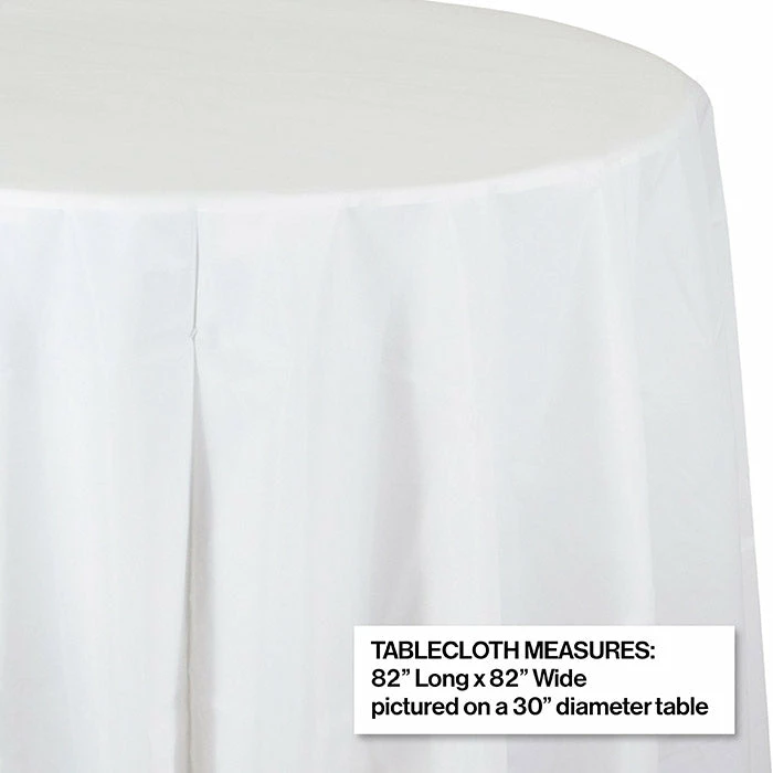 Details: Caterers, event planners, and hostesses on a budget will be able to easily liven up any party venue by displaying select party supplies atop the White Octy-Round table covers. Each 82 inch round table cover is constructed of medium weight plastic and is sized to accommodate 6 to 8 foot table rounds. The plastic table cover is perfect for use at celebrations taking place indoors or out. As an added bonus, the disposable table cover can simply be thrown away at the end of the event. White Octy-Round Plastic table covers are packaged individually. You get one White Tablecover, Octy Round 82″ Plastic for this price. Approximate Dimensions: 82 in x 82 in